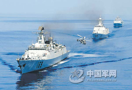 2008年12月26日,由南海艦隊3艘現(xiàn)代化戰(zhàn)艦組成的中國海軍首批赴亞丁灣、索馬里海域護航編隊,滿載著13億中國人民的深情關(guān)注,犁開了人民海軍遠洋護航的新航跡,開啟了中國海軍走向深藍的新征程,奏響了構(gòu)建“和諧海洋”的新樂章。