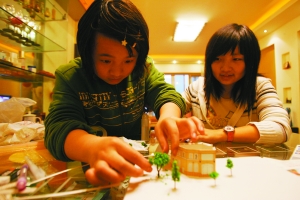 4月18日,10歲的妹妹廖俞涵在一張白紙上,仔細(xì)搭建著自己的“森林別墅”模型。