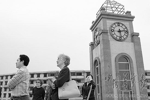 這座凝固的鐘樓,如今被人們稱為“5·12鐘樓”!霸瓉硗忸^哪個(gè)曉得這個(gè)鐘樓呢?”一個(gè)叫劉啟祿的小攤主說:“現(xiàn)在全國(guó)都曉得,全世界都曉得!