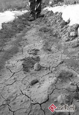 據(jù)介紹,干壩村所處海拔超過1300米,由于缺水易干旱得名。羊皮寨小組有一個水源點,不過進入3月后,水變得越來越小了,就連那里61戶人家的人畜飲水都不能保證,更不奢望有水澆灌烤煙地了。有村民告訴記者,不得已,他們開始用牛馬,或者用摩托車到很遠的地方去馱水!拔覀円患胰艘惶煲100公斤左右的水,洗臉腳的水要節(jié)約下來煮豬食,有時就連人的尿液也要節(jié)約下來喂牲畜。”一名村民說。
