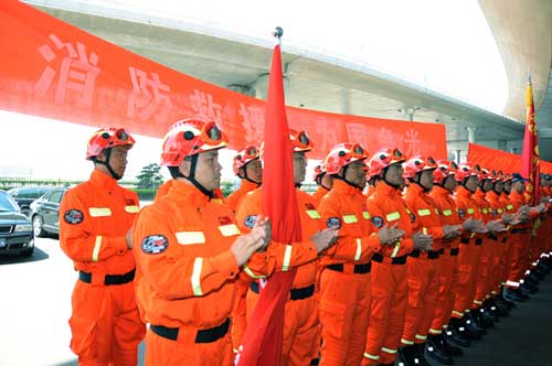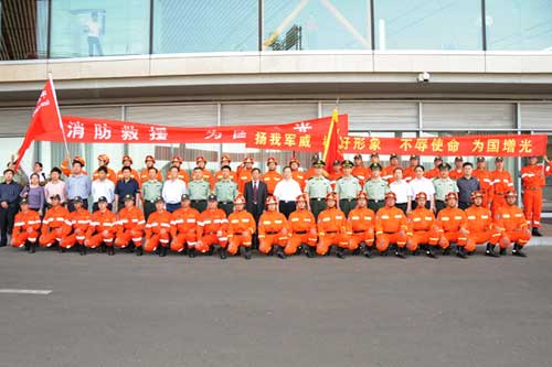 5月18日,中國消防應(yīng)急救援隊(duì)受命從北京出發(fā),赴俄羅斯參加上海合作組織“博戈羅茨克”聯(lián)合救災(zāi)演練,國家民政部副部長羅平飛、救災(zāi)司鄒銘司長,公安部消防局局長陳偉明、副局長朱力平,中國地震局趙和平副局長等有關(guān)同志到首都機(jī)場為參加演習(xí)的救援隊(duì)員,一同前往參加演習(xí)的還有中國地震國際救援隊(duì)。