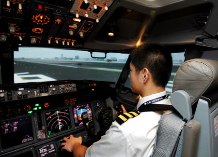 我們的訓練都是在模擬機上完成的。主要是針對起飛時一臺發(fā)動機失效、著火及飛脫,空中的部分操縱系統(tǒng)故障,高空的發(fā)動機故障,座艙急劇釋壓,著陸時部分起落架不能放下等。比如遇上湍流,飛行員首先會把飛機速度降低到穿越顛簸區(qū)域的速度,將發(fā)動機的“點火開關”扳到“連續(xù)點火”,防止發(fā)動機熄火。有時還需要斷開“自動駕駛儀”人工飛行。