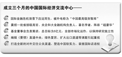 社科院、國研中心等機(jī)構(gòu),有的長于經(jīng)濟(jì)理論研究,有的長于國內(nèi)經(jīng)濟(jì)研究,而國經(jīng)中心更注重國際經(jīng)濟(jì),并結(jié)合國內(nèi)經(jīng)濟(jì)走向展開對策性研究,把握火候報送中央高層,用曾培炎理事長的話講,是發(fā)揮“臨門一腳”的作用。在運(yùn)作上是開放式,既堅持研究的原創(chuàng)性,又不斷吸收其他中外研究機(jī)構(gòu)有實用價值的成果。比如中心成立以來已有20個課題在網(wǎng)上公開招標(biāo)。將于6月下旬啟動的“經(jīng)濟(jì)每月談”,請年輕人主講,向全社會開放。