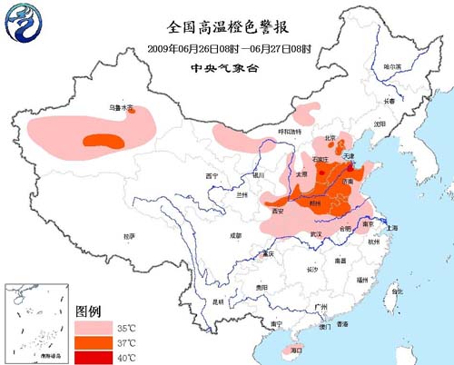 中央氣象臺今天早晨六點鐘繼續(xù)發(fā)布高溫橙色警報:受大陸暖氣團影響,預計今天白天,華北大部、黃淮、江淮、江漢、陜西中部和東部、四川盆地東北部、內(nèi)蒙古中西部、新疆南疆盆地等地有35℃以上的高溫天氣,其中,陜西中部、山西西南部、河北南部、京津地區(qū)、河南中東部、山東大部、安徽北部和南疆盆地等地的部分地區(qū)最高氣溫可達37~39℃,河北南部、山東北部局部地區(qū)氣溫可達40℃。