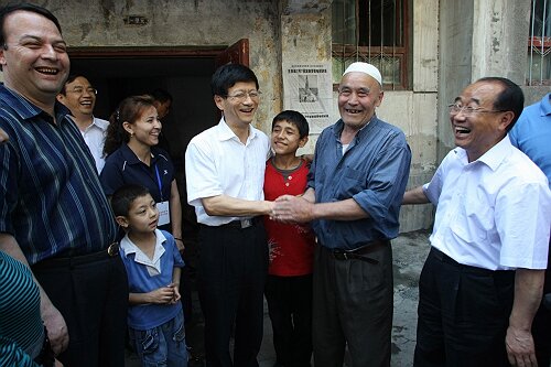 烏魯木齊市天山區(qū)團結(jié)西社區(qū)是一個維吾爾、哈薩克、蒙古和漢族等多民族和睦相處的社區(qū)。孟建柱先后來到鄒德敬和巴合提亞爾等居民家中走訪看望,并與在樓前樹陰下乘涼的社區(qū)居民談心,了解他們的生活狀況,傾聽他們的心聲,面對面地講道理、做工作。社區(qū)群眾真情訴說在美麗富饒的新疆各族人民和睦相處、共同發(fā)展的樁樁事例,紛紛聲討民族分裂分子的無恥行徑,強烈要求嚴懲兇手,維護幸福安康的生活。