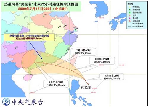 中新網(wǎng)7月17日電 據(jù)中國氣象局網(wǎng)站消息,7月16日晚,菲律賓呂宋島以東洋面的熱帶低壓加強為今年第6號熱帶風(fēng)暴“莫拉菲”(MOLAVE)。