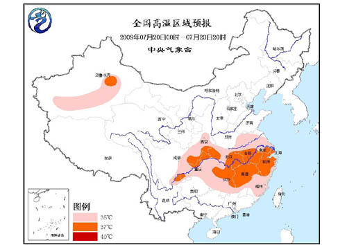 中新網(wǎng)7月20日電 據(jù)中國(guó)氣象局網(wǎng)站消息,中央氣象臺(tái)20日06時(shí)繼續(xù)發(fā)布高溫橙色警報(bào):預(yù)計(jì),今天白天,江南、江淮、江漢、黃淮南部、陜西南部、重慶、四川東部、貴州北部以及新疆南疆盆地等地將有35℃以上的高溫,其中,江南中北部、江淮西南部、湖北東部和西北部、陜西東南部、重慶西北部、四川東部以及吐魯番盆地等地的最高氣溫可達(dá)37~39℃。