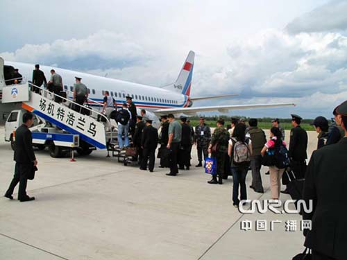 北京時間下午5點,當?shù)?哈巴羅夫斯克)時間晚上8點,赴俄人員抵達俄羅斯遠東城市哈巴羅夫斯克,在機場受到俄軍方及中國駐俄羅斯大使館人員的熱烈歡迎。