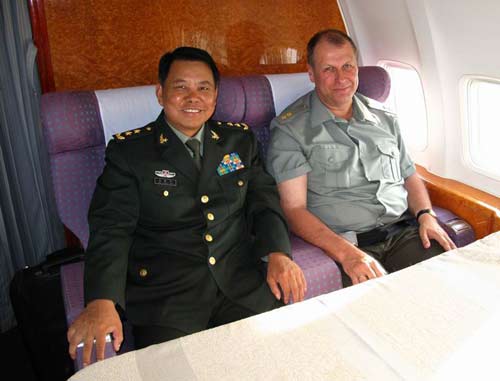 參加“和平使命-2009”中俄聯(lián)合反恐軍事演習(xí)的中俄雙方導(dǎo)演部、戰(zhàn)役指揮部部分人員及媒體記者共37人于當?shù)貢r間7月20日20點(北京時間17點)抵達俄羅斯遠東軍區(qū)司令部所在地哈巴羅夫斯克,參加7月22日舉行的“和平使命-2009”中俄聯(lián)合軍演開始儀式。