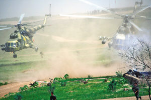 本報吉林洮南7月26日電 記者柴永忠、孫兆秋報道:茫茫草原,狂飆乍起?茽柷卟菰钐帲瑲v時5天的“和平使命—2009”中俄聯(lián)合反恐軍事演習今天舉行最后一次大規(guī)模實兵演習。