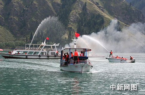 中新社烏魯木齊八月五日電 (記者 孫亭文)四日,新疆維吾爾自治區(qū)交通廳地方海事局在新疆著名旅游景點(diǎn)天山天池舉行水上安全應(yīng)急演習(xí)。據(jù)介紹,是次演習(xí)出動各類船艇十余艘,參演人員近百名,是新疆水上舉辦的參演力量最強(qiáng)、參演科目最多、險(xiǎn)情較為復(fù)雜的一次綜合性水上安全應(yīng)急處置,是對水上安全突發(fā)事件發(fā)生時(shí)與地方各相關(guān)部門、單位密切協(xié)作配合的一次“實(shí)戰(zhàn)練兵”。