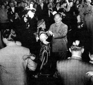 樂隊(duì)為毛澤東奏起的第一支曲子,通常是《瀏陽河》。樂曲響起來,毛主席就帶著擠在最靠近他身邊的女同志,步入舞池,四周的人也紛紛隨之下場,舞會漸漸進(jìn)入高潮。