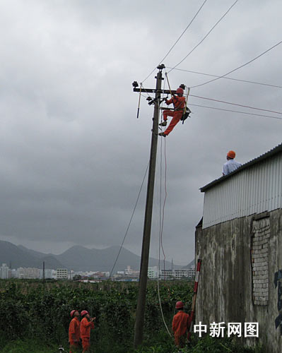 浙江省電力公司相關(guān)人士表示,因現(xiàn)在臺風正在登陸中,為確保人身安全,很多地方尚不具備搶修條件。待到臺風登陸后,搶修就將全面展開!澳壳,我們已準備了近千輛搶修車,320支應(yīng)急搶險小分隊,近5000人處于待命狀態(tài),94支應(yīng)急小分隊已經(jīng)到達邊遠地區(qū)變電所蹲點待命。此外,還有兩支專家組也已經(jīng)就緒,隨時可以趕赴災(zāi)區(qū)指導抗災(zāi)救災(zāi) !