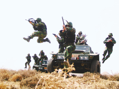 8月11日凌晨4時,蘭州軍區(qū)某“鋼鐵紅軍師”兵分?jǐn)?shù)路,通過空中、鐵路、公路向沈陽洮南合同戰(zhàn)術(shù)訓(xùn)練基地實施千里立體機動,拉開了全軍“跨越—2009”跨區(qū)實兵演練的序幕。