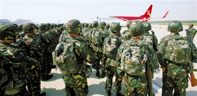 今天(1日)上午11時(shí)30分,沈陽(yáng)桃仙機(jī)場(chǎng),沈陽(yáng)軍區(qū)某摩步師150名官兵和17臺(tái)裝備組成的先期偵察戰(zhàn)斗群,搭乘一架客機(jī)和一架貨機(jī)向大西北出征。隨后,該師萬(wàn)人千車將采取鐵路輸送、摩托化開(kāi)進(jìn)兩種機(jī)動(dòng)方式跟進(jìn),從東北渤海之濱直撲西北賀蘭山麓。至此,“跨越—2009·青銅峽”實(shí)兵檢驗(yàn)性演習(xí)正式拉開(kāi)戰(zhàn)幕。