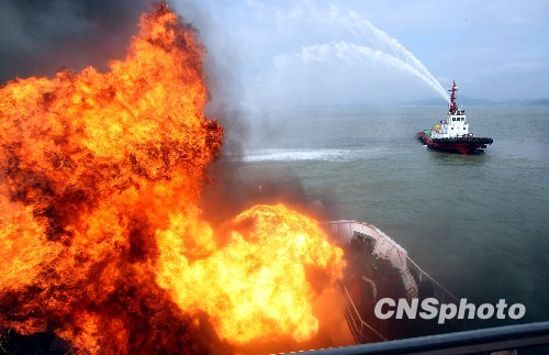 中新網(wǎng)9月4日電 隨著指揮船發(fā)射3枚紅色信號(hào)彈,新中國(guó)建國(guó)以來(lái)最大規(guī)模的海上搜救演習(xí)9時(shí)在寧波-舟山港的佛渡水道海域正式開(kāi)始。