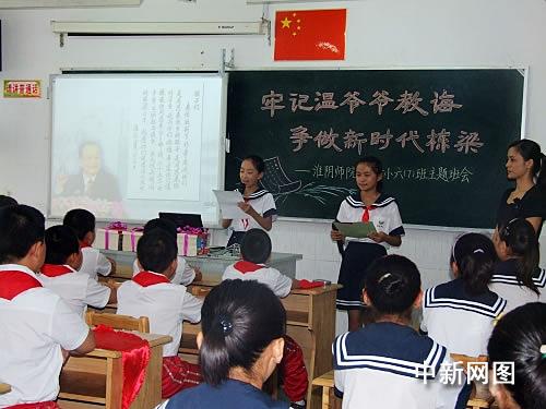主題班會上,淮陰師范學院第一附屬小學的學生們還向淮安全市的少先隊員發(fā)出了“牢記溫爺爺?shù)慕虒,像周總理一樣從小樹立‘為中華之崛起而讀書’遠大志向”的倡議;窗彩形瘯泟⒂乐摇⒒窗彩形N、宣傳部長劉希平等領導參加了主題班會,并向孩子們贈送圖書,鼓勵孩子們牢記溫總理的教導,好好學習,將來為家鄉(xiāng)的建設做貢獻。