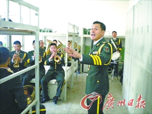 來(lái)自武警廣東省總隊(duì)軍樂(lè)團(tuán)的31位戰(zhàn)士住在8號(hào)樓,戰(zhàn)士們?cè)谶@里已經(jīng)住了兩個(gè)多月,每天除了背讀樂(lè)譜就是演奏訓(xùn)練,單調(diào)乏味也異常辛苦。