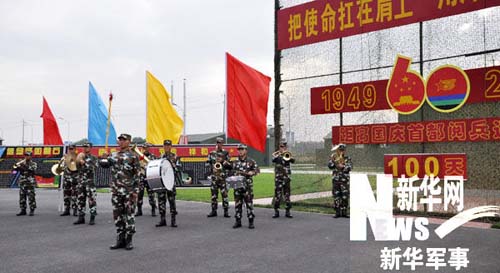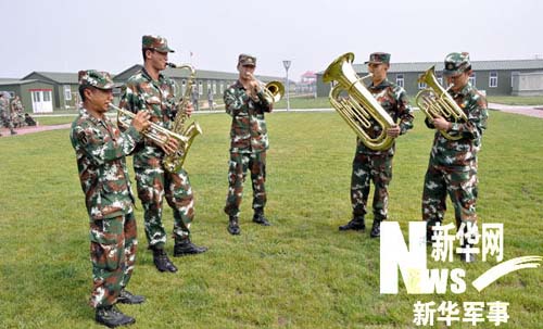 進(jìn)駐閱兵村后,為豐富官兵文化生活需要,方隊(duì)緊急組建了這支小型軍樂隊(duì),配備了大小號、長圓號、大小軍鼓等各種管弦和打擊樂器。雖然樂隊(duì)成員只有10人,卻個(gè)個(gè)藝精才高。他們有的畢業(yè)于藝術(shù)學(xué)校,民樂、西洋管樂樣樣皆通;有的來自嗩吶世家,"童子功"相當(dāng)深厚;還有的是國家一級演員的弟子,快板說得頭頭是道……個(gè)個(gè)都是方隊(duì)的文藝骨干。這支軍樂隊(duì)也成了方隊(duì)的文藝演出小分隊(duì)。