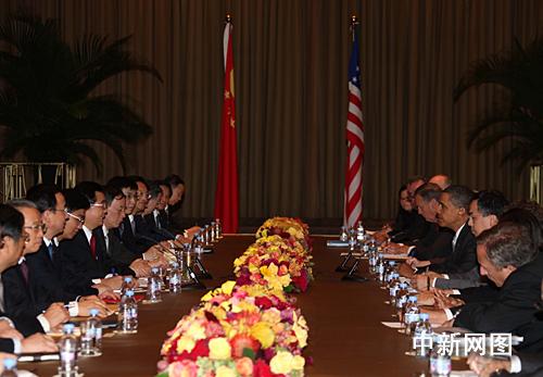 胡錦濤說,我高興地看到,當前中美關(guān)系總體上呈現(xiàn)良好發(fā)展勢頭,我和奧巴馬在倫敦達成的各項共識正在得到落實,雙方正在共同建設(shè)積極合作全面的中美關(guān)系。