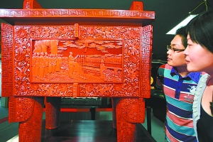 由雕漆工藝完成的鼎盛中華造型以司母戊鼎為原型,重達(dá)300多斤。制作時先經(jīng)過半年時間刷上240多層漆,再在1.2厘米厚度的漆面上進(jìn)行手工雕刻。其正面以油畫“開國大典”為內(nèi)容,背面題為“中華賦”及長城圖案。象牙作品以長兩米、重320斤的百年“老”象牙材料為基,以56個民族載歌載舞為主題,背景是30處世界文化遺產(chǎn)。象牙、雕漆、玉器和景泰藍(lán)被譽(yù)為工藝美術(shù)界的“四大名旦”,另外兩項巨作景泰藍(lán)“太平有象”和玉雕“九龍浴佛”也將陸續(xù)亮相。 (記者耿諾)