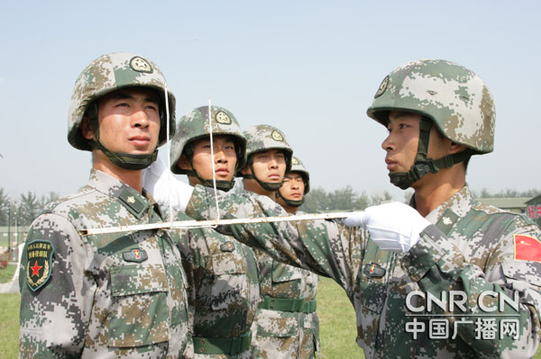 “對,我們一起來制作一個量角器,一個六線儀,這樣就解決了擺頭看齊、兩腳平齊、隊列整齊了! 唐海濤的想法馬上得到了其他4名村官的響應(yīng)。