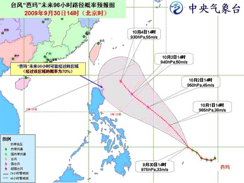 中新網9月30日電 據(jù)中國氣象局網站消息,今年第17號強熱帶風暴“芭瑪”于30日下午在菲律賓以東洋面加強為臺風,30日17時其中心位于菲律賓馬尼拉東南方大約1560公里的洋面上,就是北緯10.3度、東經134.7度,中心附近最大風力有12級(35米/秒),中心最低氣壓為970百帕。