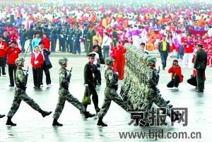 今天的國慶盛典精彩紛呈 ,高潮迭起,電視機前觀看直播的讀者一定大飽眼福。其實,盛典中的精彩瞬間還多著呢,有很多是您用肉眼看不到的。本報記者在這里特地為您揭秘一些鏡頭后的細(xì)節(jié),感人的故事。
