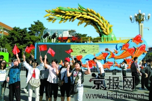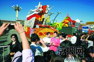 今天上午8時(shí)30分,60臺(tái)國(guó)慶彩車在天安門廣場(chǎng)亮相,開始進(jìn)行為期6天的集中展示,開放時(shí)間比原計(jì)劃提前了一個(gè)半小時(shí)。在兩小時(shí)時(shí)間內(nèi),數(shù)萬(wàn)市民和游客涌入廣場(chǎng)參觀,爭(zhēng)相與彩車合影,國(guó)慶彩車當(dāng)之無愧地成為今天的廣場(chǎng)明星。