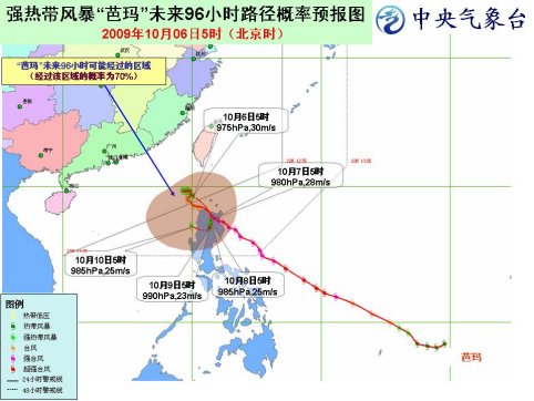 中新網(wǎng)10月6日電 中央氣象臺6日6時發(fā)布臺風(fēng)預(yù)報稱,今年第17號強熱帶風(fēng)暴“芭瑪”將以每小時10公里左右的速度向南偏東方向移動,并將于6日下午到夜間在菲律賓呂宋島北部沿海登陸,強度緩慢減弱。