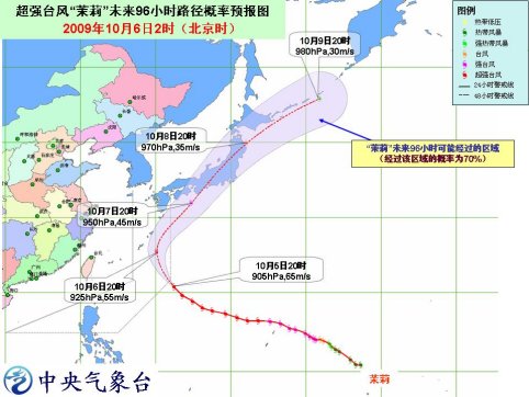 另外,今年第18號超強臺風(fēng)“茉莉”的中心6日2時位于日本沖繩島那霸東南方大約750公里的西北太平洋洋面上,就是北緯21.1度、東經(jīng)132.5度,中心附近最大風(fēng)力仍有17級以上(65米/秒),中心最低氣壓為905百帕。