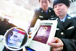 針對偷渡犯罪的猖獗,邊檢總站加大培訓(xùn)民警識別偷渡人員的力度,同時采取高科技檢測手段識別偽假證件。記者在現(xiàn)場看到,目前民警使用的最新式檢查護照簽證儀器,最小只有鼠標大小,可隨身攜帶,還有快速“刷”護照的證件閱讀機,民警把護照在機器上一“刷”,讀取信息同時就能識別護照上的防偽標識。