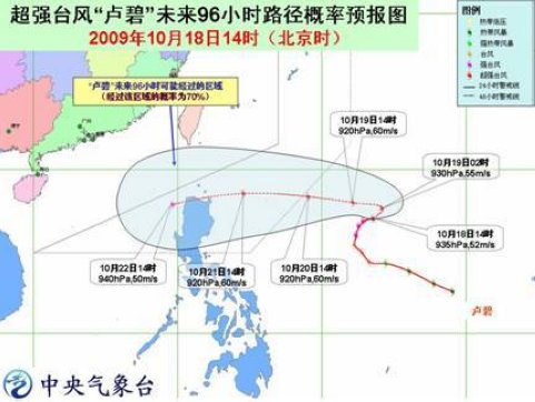 18日17時(shí),“盧碧”的中心位于菲律賓馬尼拉東偏北方大約1400公里的西北太平洋洋面上,就是北緯17.5度、東經(jīng)133.8度,中心附近最大風(fēng)力有16級(jí)(55米/秒),中心最低氣壓為925百帕。