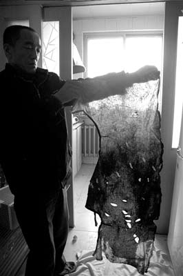 蘭建國遇害前所穿警服已被取回家中。警服背后有幾十處破痕,泥土和血跡混在一起。背心上也有幾十處小孔,呈三片分布,血跡斑斑。警褲也有劃痕。李海燕表示,其丈夫頸部、背部、腿部傷痕累累,刀傷共達(dá)50多處。針對網(wǎng)上流傳的一根手指被逃犯切斷后用于開啟指紋門一事,她說:“小蘭(蘭建國)的10根手指都在手上,其中右手拇指從虎口處被切開,幾乎斷裂,僅靠皮連著手掌。”