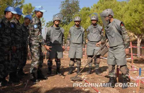 我第六批赴黎巴嫩維和工兵營以成都軍區(qū)某集團軍工兵團為主組成。該團曾參加過中越邊境大掃雷,3次受派進行人道主義援外排雷,已成功擔負3批赴黎維和掃雷任務,掃雷排爆經(jīng)驗豐富,先后發(fā)現(xiàn)和排除未爆彈及地雷五千余枚,并創(chuàng)造了“零傷亡”的出色成績。