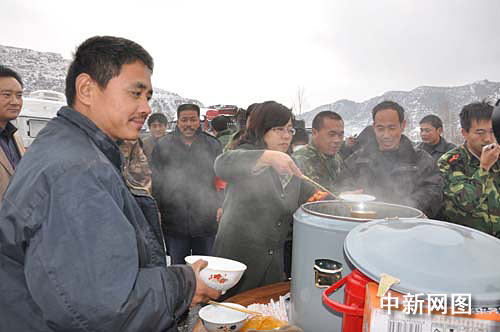中新網(wǎng)11月15日電 (高增平 趙曉平 王君 )大雪封路,造成忻黑線一些路段車輛滯留。山西呂梁興縣縣委、縣政府及時(shí)啟動(dòng)應(yīng)急預(yù)案,迅速出擊,切實(shí)為民解憂,為滯留車輛送關(guān)心、送溫暖,保障受困人員有熱飯吃,有開(kāi)水喝,能穿暖,不受凍。