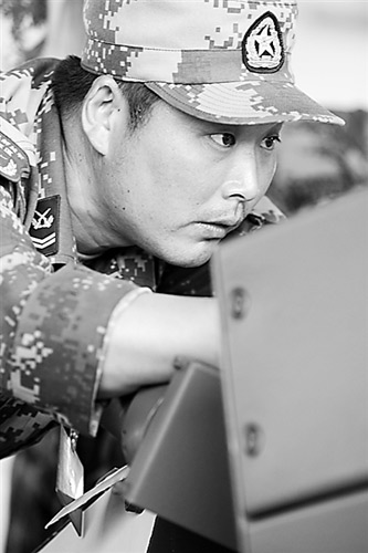 丁輝鉆研裝備技術(shù)的癡迷程度,很多戰(zhàn)友都領(lǐng)教過(guò)。一次,一臺(tái)步戰(zhàn)車在訓(xùn)練中突然熄火,丁輝趕到后,一頭鉆進(jìn)車?yán)锩α似饋?lái)。飯點(diǎn)過(guò)了,戰(zhàn)士小李把飯菜送來(lái)擺在車頂上。丁輝眼睛盯著車?yán)锏膬x表,伸手拿起饅頭準(zhǔn)備蘸菜湯吃,結(jié)果卻伸向了機(jī)油盆。