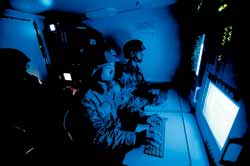 在行動的各個環(huán)節(jié),擔(dān)負(fù)干擾的“藍(lán)軍”電磁分隊加緊實施干擾!八{(lán)軍”電磁分隊不時釋放錯誤誘導(dǎo)信息,干擾“紅軍”指揮通信,誘使裝甲車隊向錯誤地域開進,“紅軍”指揮員及時啟用隱蔽指揮網(wǎng)接受上級命令,各級指揮員迅速采取應(yīng)對措施,開通新的通信網(wǎng)絡(luò)。隨著信息對抗的展開,“藍(lán)軍”啟動多種干擾方式對“紅軍”指揮控制通信系統(tǒng)進行干擾壓制,紅方指揮員啟用反干擾預(yù)案,綜合運用多種手段對抗,并設(shè)置佯動通信網(wǎng),對“藍(lán)軍”實施戰(zhàn)術(shù)欺騙,保障了指揮通信的順暢!八{(lán)軍”隨即啟用動態(tài)干擾網(wǎng)絡(luò),搜尋“紅軍”指揮通信網(wǎng),采取從短波、超短波、到微波接力等多波段覆蓋式干擾壓制,此時的“紅軍”大部通信方式中斷,采取有線通信、衛(wèi)星通信與運動通信相結(jié)合的方式,保證了不間斷的指揮。