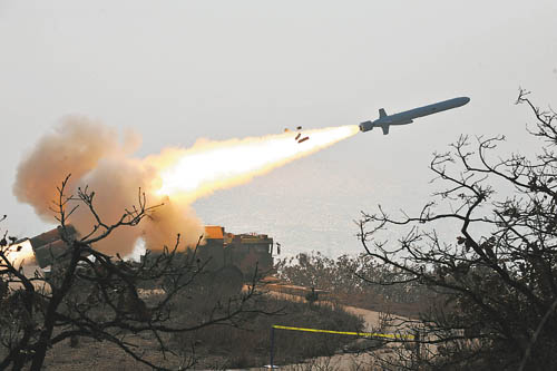 遼東海岸一個(gè)偏僻的山坳里,隨著指揮員“5、4、3、2、1、發(fā)射!”一連串指令的發(fā)出,某新型導(dǎo)彈噴射著烈焰撕破?眨瑩湎驍(shù)百公里外的“敵艦”。