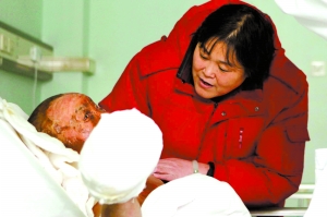 龍淑芳說,她找電話求助時(shí),聽到身后“噗”的一聲。她回頭看見丈夫身上燃起了大火,現(xiàn)場人員立即撲滅了火。龍淑芳和八旬的婆婆被人強(qiáng)制送上一輛面包車時(shí),席新柱還躺在大廳的地上,身上冒著煙氣。事后,席新柱被送往304醫(yī)院搶救。