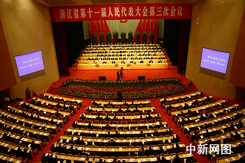 今天下午兩時三十分,本次人代會的第三次全體會議在浙江省人民大會堂舉行。閉幕大會由浙江省人大常委會副主任王永明主持。