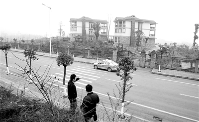 正在喂狗的時(shí)候,有兩輛車開了過來,車上10多個(gè)人一下來就迫不及待地倚著欄桿看里面的別墅!皠e墅真是豪華啊,在我們整個(gè)重慶找不到這好的了!”這些游客一個(gè)個(gè)看得很興奮,還有的在別墅邊照相留念。