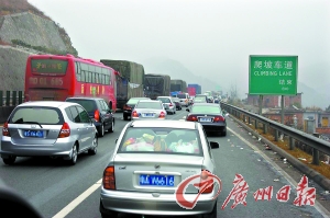 據(jù)交警介紹,近兩天來南下車輛總量均是北上車輛的3倍左右,如前天粵北站入口南下車流量有2.1萬多輛,出口北上車輛只有7012輛,昨天南北車流量則更加懸殊。