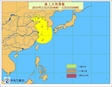 中新網(wǎng)2月24日電 中央氣象臺24日06時繼續(xù)發(fā)布海上大風(fēng)預(yù)報:2月24日凌晨2時,渤海、黃海大部海域、東海大部海域出現(xiàn)了5~6級偏南風(fēng);南海大部海域出現(xiàn)了4~6級東南風(fēng)。渤海、黃海大部海域、東海西部海域、臺灣海峽、北部灣、南海北部海域有霧,能見度不足10公里。其他海域天氣海況條件較好。