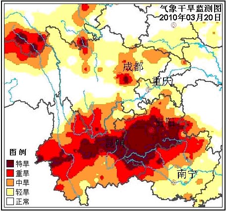 3月16日,云南省氣象局稱,該省干旱為:秋、冬、春連旱,全省綜合氣象干旱重現(xiàn)期為80年以上一遇,其中滇中、滇東、滇西東部的大部地區(qū)為100年以上一遇。據(jù)了解,旱災已經造成云南省3000多萬畝農作物受災。3月,受災人數(shù)已超越700萬人。