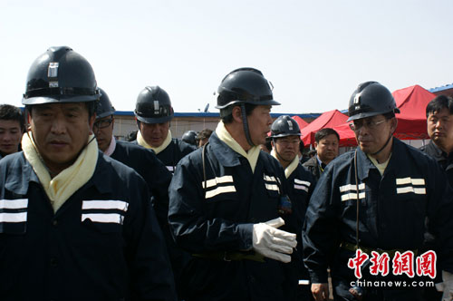 中新網(wǎng)4月2日電(高增平)4月2日,國(guó)家安監(jiān)總局局長(zhǎng)駱琳、山西省委書記張寶順、山西省省長(zhǎng)王君等人兩次在華晉焦煤公司王家?guī)X透水事故搶險(xiǎn)救援現(xiàn)場(chǎng)視察,分別在主井、風(fēng)井內(nèi)等處督促指導(dǎo)。