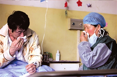 48歲的獲救工人魏合榮是湖北襄樊人,大家都叫他老魏。妻子有病在家,托母親和女兒來看望他。老魏流著淚,緊緊地抱住女兒,又將岳母的手緊緊攥在自己手中。這一幕感染了周圍的醫(yī)護(hù)人員,有人跟著悄悄抹眼淚。一位小護(hù)士對記者說,老魏是個(gè)特別樂觀的人,剛?cè)朐簳r(shí),由于病人們的眼上都蒙著毛巾,醫(yī)生們見不到他們的表情,老魏潔白的牙齒和燦爛的笑容給他們留下了深刻的印象。