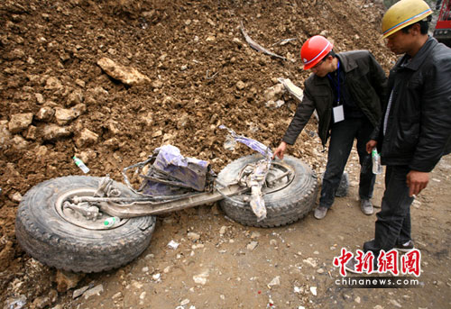 樂(lè)山市消防支隊(duì)支隊(duì)長(zhǎng)夏銳告訴記者,兩只搜救犬經(jīng)過(guò)三次反復(fù)搜尋,最終,在2號(hào)通道入口前方的一片區(qū)域內(nèi),救援人員很快確定了一個(gè)可疑的被埋點(diǎn)。經(jīng)過(guò)現(xiàn)場(chǎng)挖掘,18時(shí)許,在搜救犬確定的區(qū)域內(nèi),搜救人員經(jīng)過(guò)清理,現(xiàn)場(chǎng)露出一臺(tái)汽車(chē)的半截貨箱,由于汽車(chē)下半截周?chē)蔷奘,必須將巨石處理后方能施救?/p>