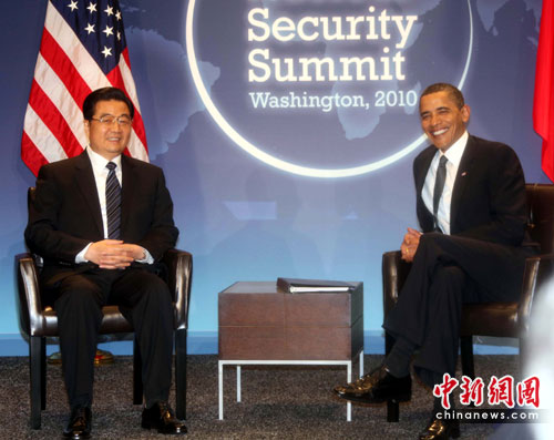 中新社華盛頓4月12日電 (記者 張朔 吳慶才)中國國家主席胡錦濤當(dāng)?shù)貢r(shí)間12日下午在華盛頓會見美國總統(tǒng)奧巴馬,雙方就中美關(guān)系及共同關(guān)心的重大國際和地區(qū)問題交換了意見,達(dá)成重要共識。胡錦濤就下階段中美關(guān)系發(fā)展提出5點(diǎn)重要主張。