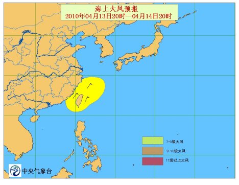 中新網(wǎng)4月13日電 中央氣象臺(tái)今日18時(shí)繼續(xù)發(fā)布海上大風(fēng)預(yù)報(bào):4月13日下午2時(shí),黃海大部海域出現(xiàn)了6~7級(jí)西北風(fēng);東海大部海域、臺(tái)灣以東洋面出現(xiàn)了6~7級(jí)、陣風(fēng)8~9級(jí)的東北風(fēng);臺(tái)灣海峽出現(xiàn)了7~8級(jí)東北風(fēng)。臺(tái)灣海峽能見度不足10公里。其他海域天氣海況條件較好。